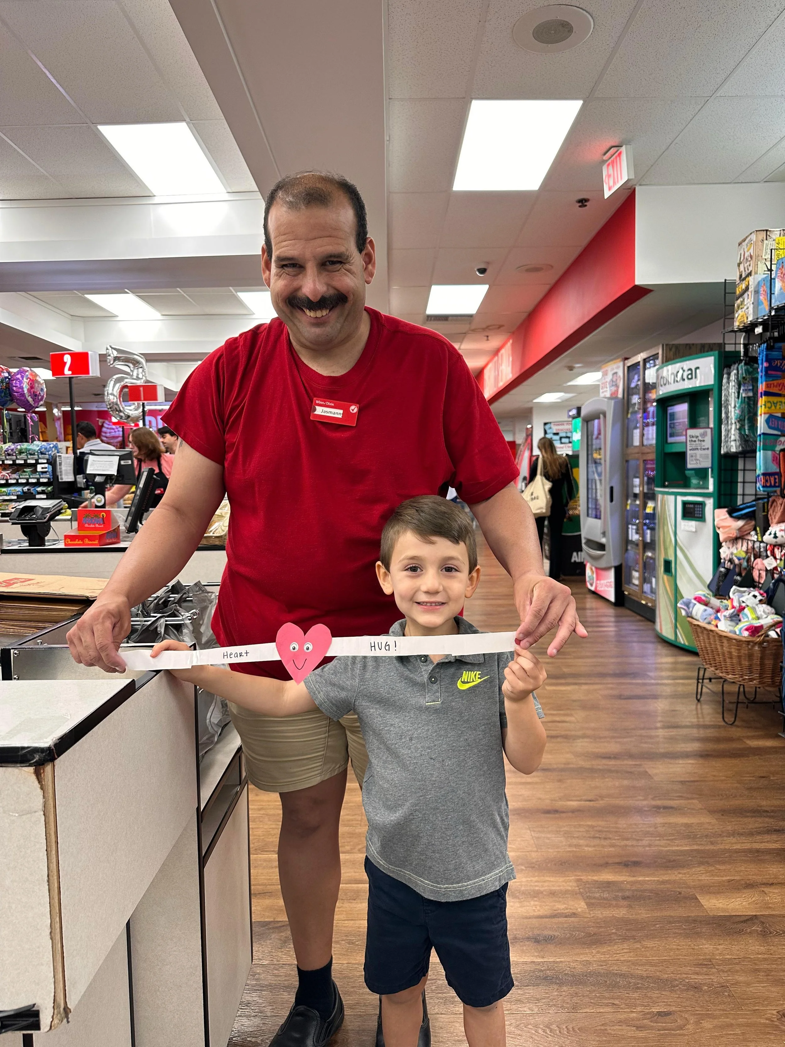 As part of their lesson, they went in search of community helpers in our own community to say thank you and share a special “Heart Hug” they made in small groups.